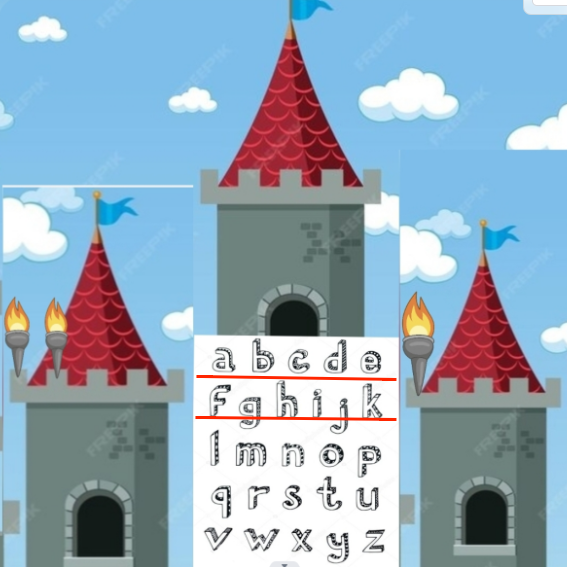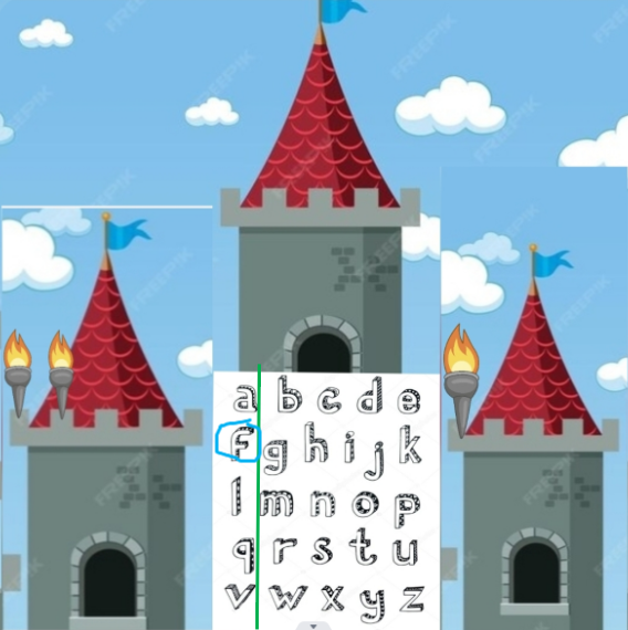 First we count the horizontal rows, watching the left tower. So , the letter is one of the second row...f, g, h, i, j or k.